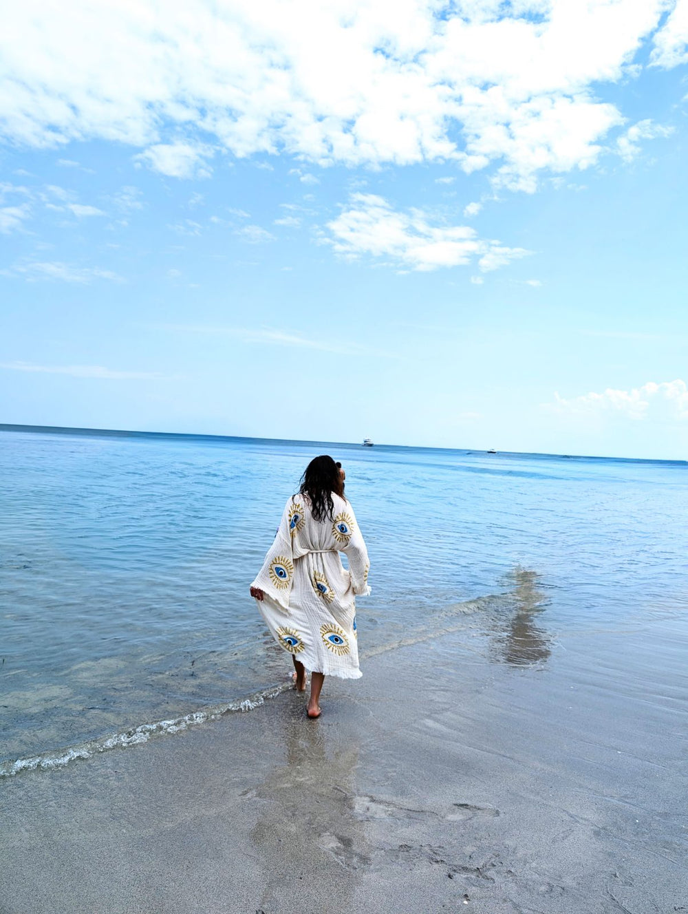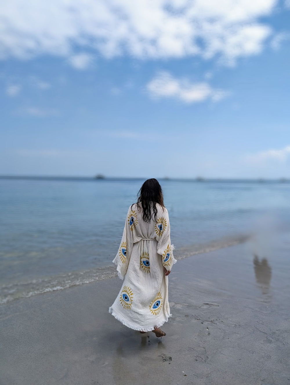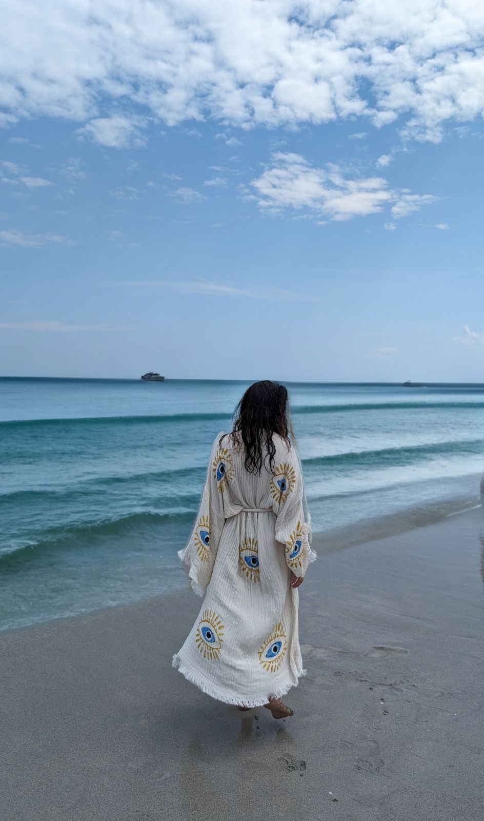 Handmade evileye design, Organic Turkish Cotton Robe that’s soft, cozy, lightweight, quick-drying, and eco-friendly offers a delightful combination of comfort, practicality, and sustainability.