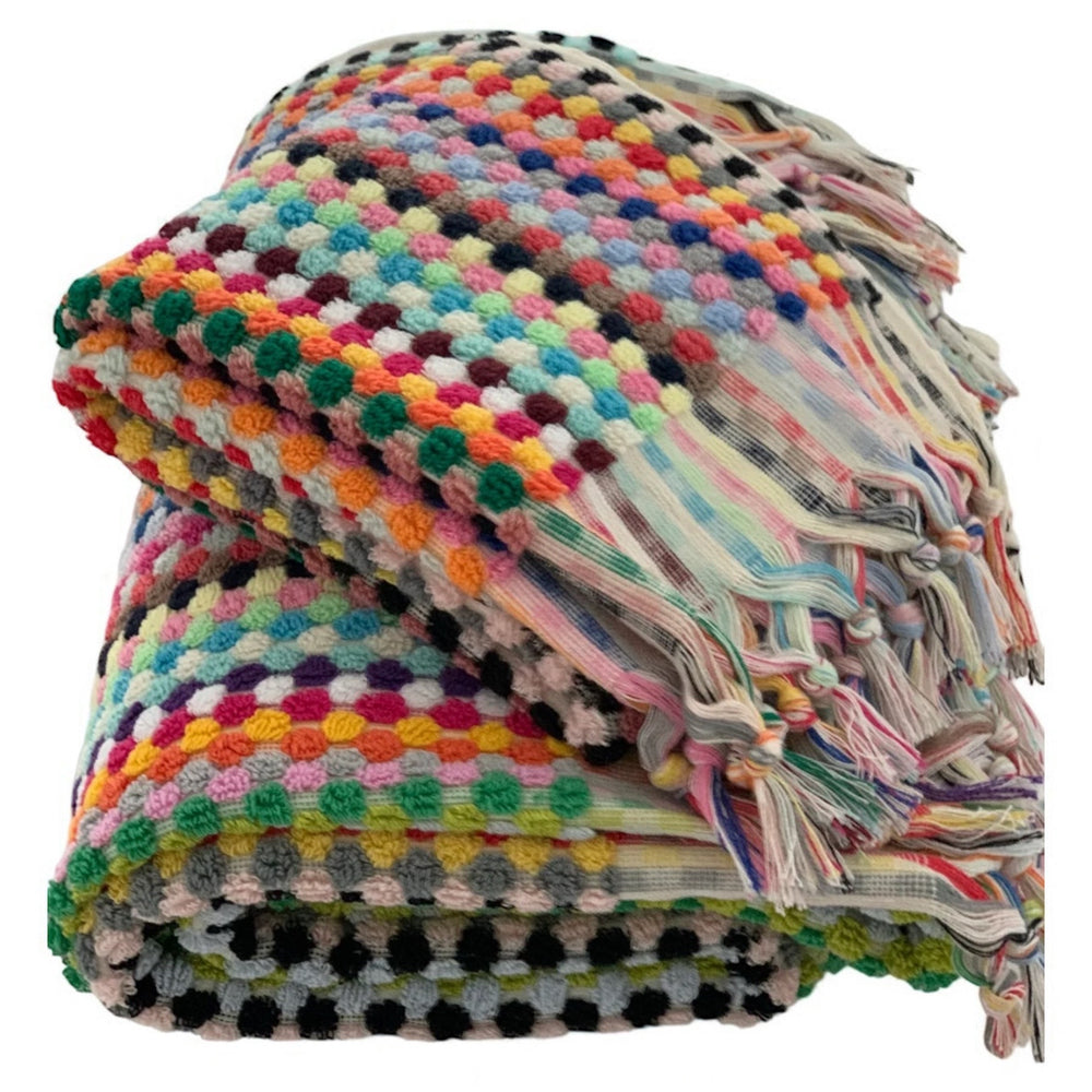 Add a vibrant touch to your bathroom with our Luma Handwoven Rainbow Pom Pom Terry Towel. Made from 100% organic cotton and crafted in Turkey, this towel is luxuriously soft, durable, and eco-friendly thanks to Oeko-Tex® certified yarn.