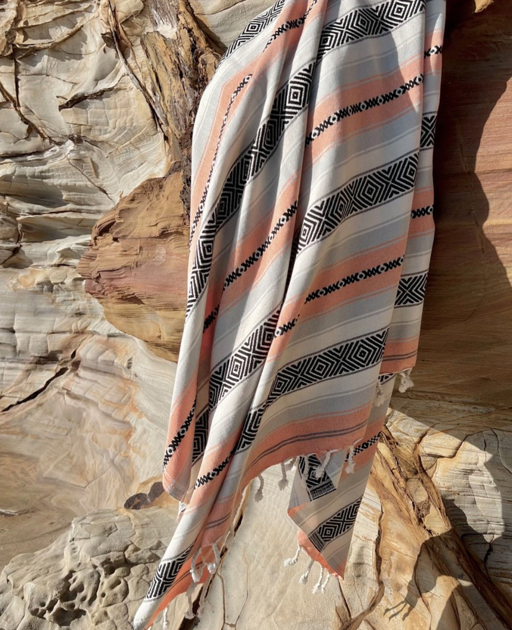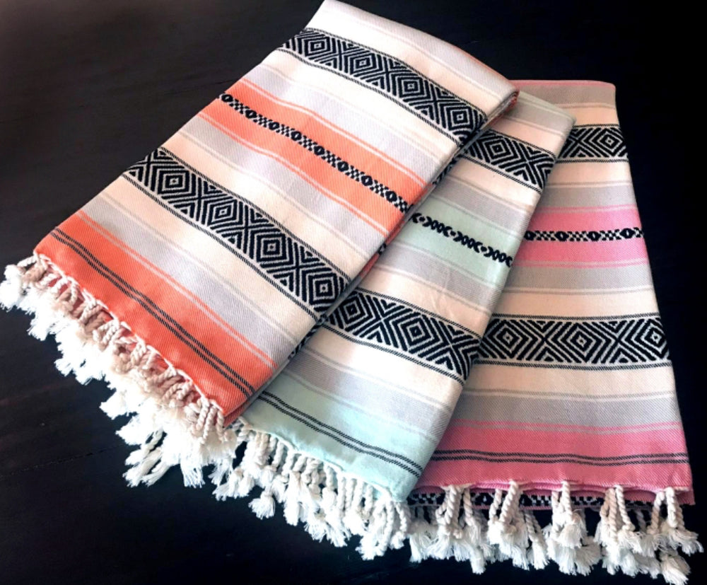 Mexico Pattern Orange Beach Towel – can be used as a Bath Towel, Shawl, Scarf, Throw Blanket, Yoga Towel, or Picnic Blanket